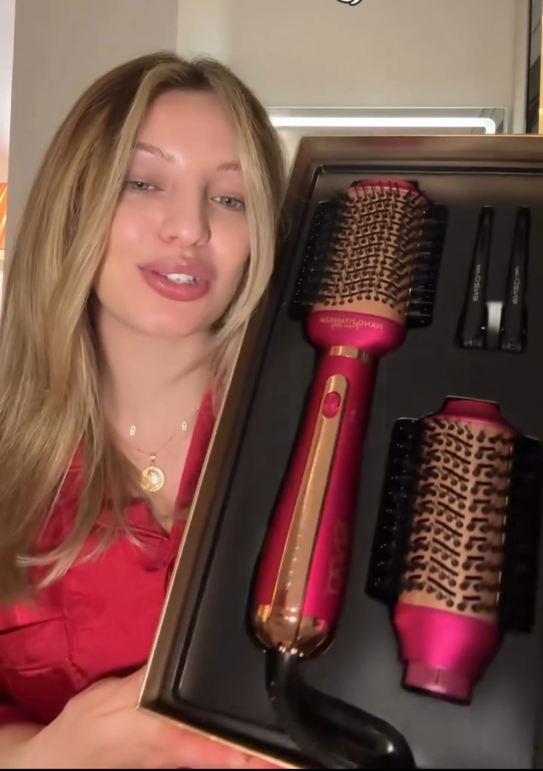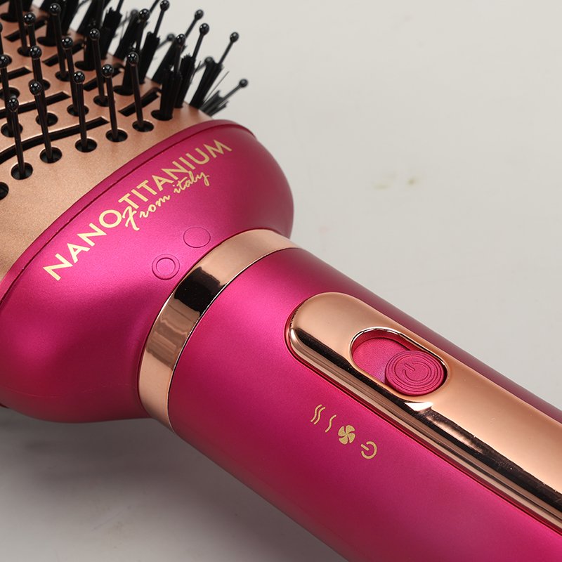 * تصميم مريح وذكي: شعيرات متطورة وفوهات هواء جانبية تسمح بتجفيف الشعر وتصفيفه في آن واحد، مما يوفر عليكِ نصف الوقت!